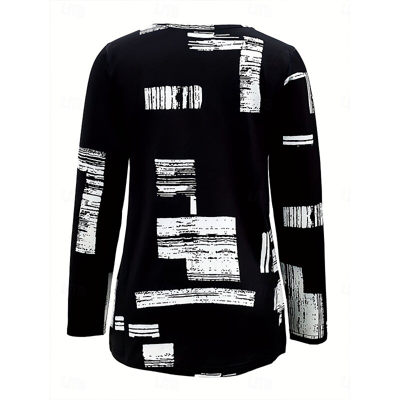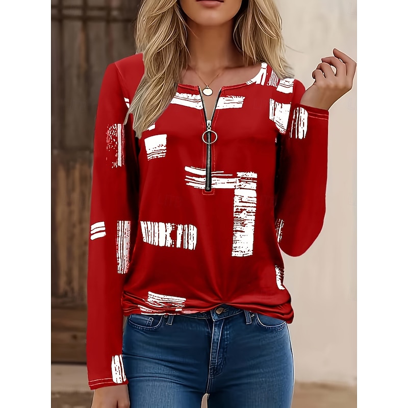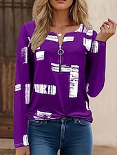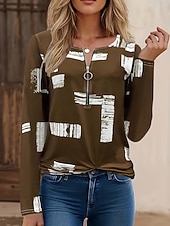 More information about Women's T Shirt Graphic Geometric Vintage Fashion Casual Long Sleeve Crew Neck Regular Tops Daily Zipper Print Black Red Blue Purple Brown Fall Winter