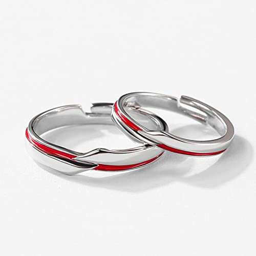 More information about Engagement Rings Sterling Silver, Wedding Rings for Couples Set Red Red Line Pattern Birthday Gift Ring