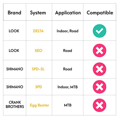 • COMPATIBILITY: The shoes are universally compatible with 2-bolt & 3-bolt cleats, including SPD, SPD-SL, LOOK Delta, Keo, Crank Brother and Speedplay, offering the perfect platform no matter what pedals you ride. The cleats included are fully compatible with all LOOK DELTA spin and road bike system. And they are in exactly same size with s Peloton cleats, so no more need to adjust the pedal tension every time when rider changes.