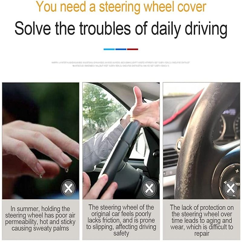More information about Leather Car Steering Wheel Cover Elastic Breathable Anti-Slip Universal 15 inch Steering Wheel Cover for Men Women