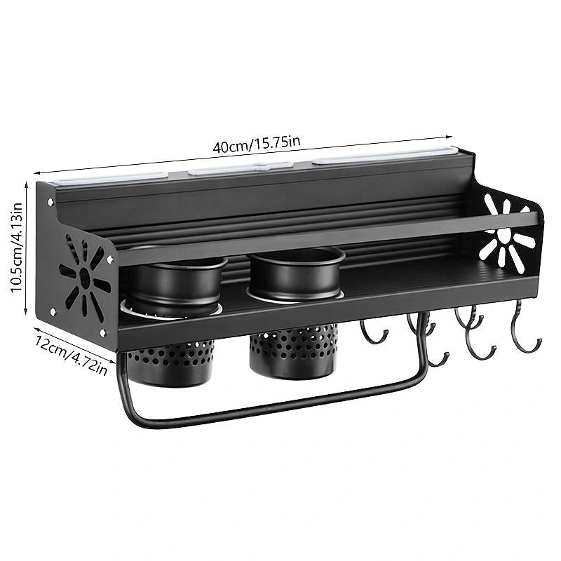 - Two installation methods: Choose between using traceless adhesive or screws to mount this utensil holder on your wall. Once installed, you can easily organize and store various kitchen items such as spices, knives, forks, straws, and kitchen gadgets, helping you say goodbye to a messy kitchen.