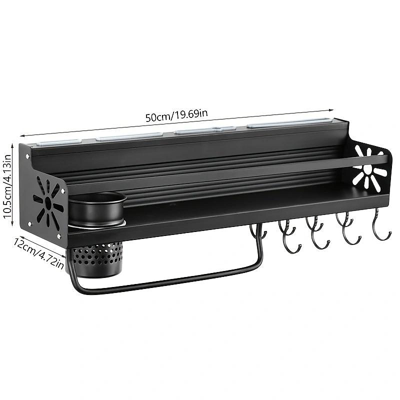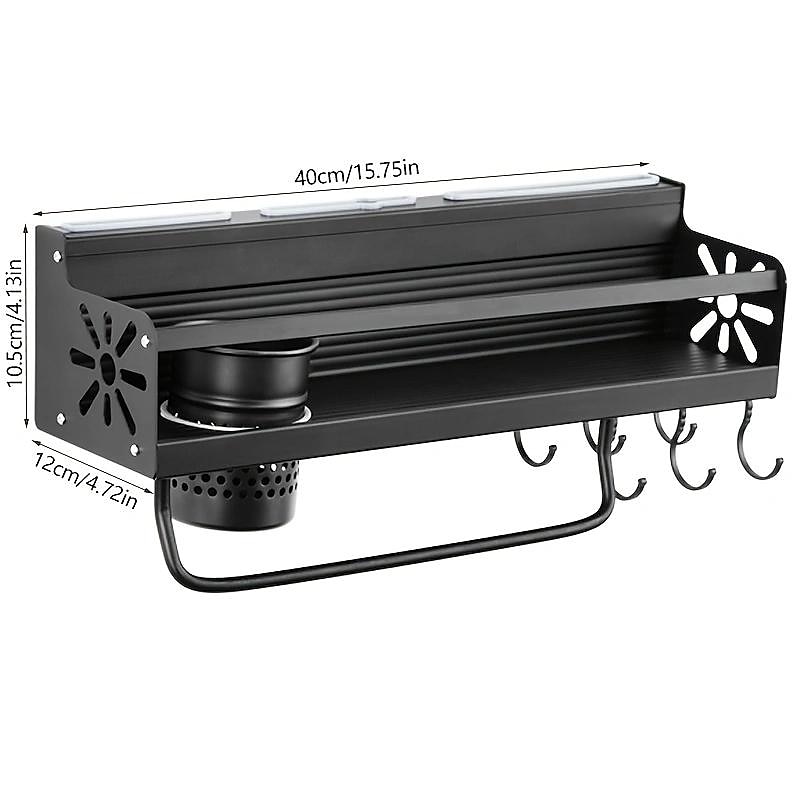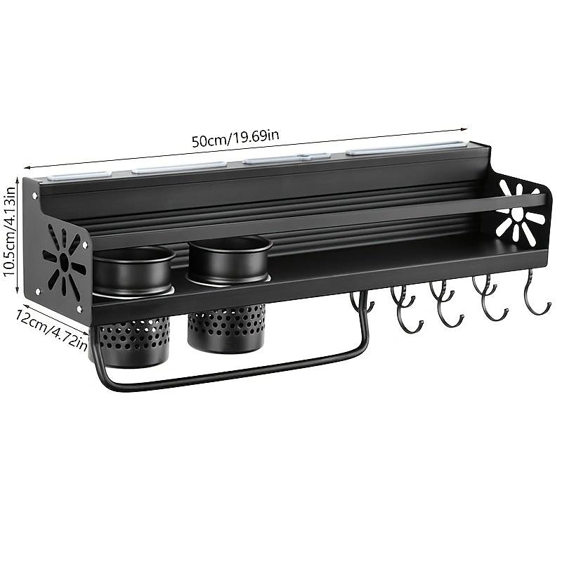 1pc Seasoning Rack With Hook, Kitchen Storage Rack, Multifunctional Household Wall-mounted Chopsticks Knife Rack, No Punching Kitchenware Storage Hanging Rack, Home Kitchen Supplies