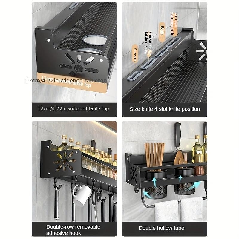 More information about 1pc Seasoning Rack With Hook, Kitchen Storage Rack, Multifunctional Household Wall-mounted Chopsticks Knife Rack, No Punching Kitchenware Storage Hanging Rack, Home Kitchen Supplies