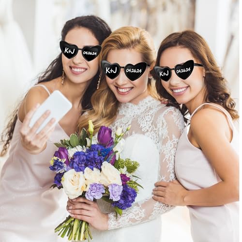 Flutesan 24 Pcs Personalized Heart Shaped Sunglasses Bulk Custom Sunglasses with 8 Pens for Adult DIY Bridal Party Favor 1