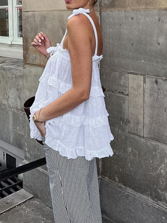 More information about Women's Cotton Linen Shirts Blouse Plain Modern Casual Sleeveless Strap Regular Tops Daily Going out Cut Out White Summer