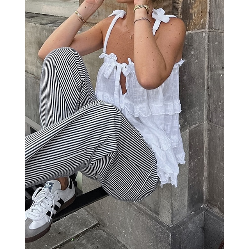 Women's Cotton Linen Shirts Blouse Plain Modern Casual Sleeveless Strap Regular Tops Daily Going out Cut Out White Summer 2