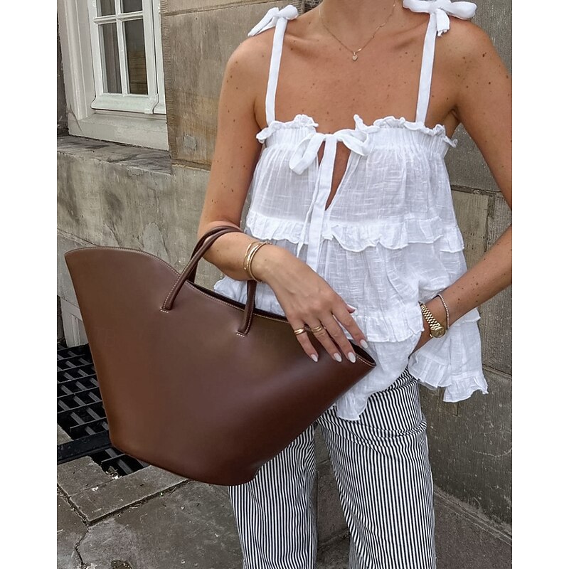 HOT ! Women's Cotton Linen Shirts Blouse Plain Modern Casual Sleeveless Strap Regular Tops Daily Going out Cut Out White Summer
