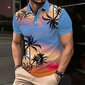 More information about Men's Palm Tree Hawaiian Polo Shirts Short Sleeve Polo Shirts Collared Shirts Resort Outdoor Daily Wear Vacation Wear 3D Print Summer Spring Fall Blue