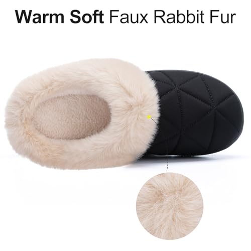 • 【Fashion and Comfy Coexist】Diamond check pattern with fluffy rabbit hair, make these women's slippers in lightweight and cozy basis, more fashionable, suitable for women of any age. In addition, the soft pure cotton lining makes your feet warm and comfortable in the cold winter.