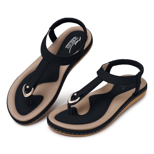 SHIBEVER Womens Sandals Summer Flat: Dressy Casual T-Strap Flip Flop Thong Flats Sandals - Comfortable Walking 6