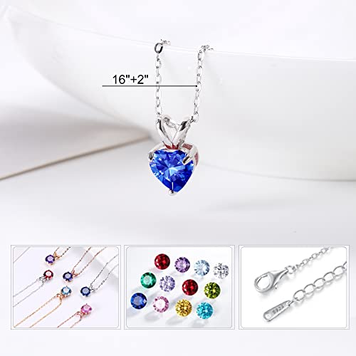 trending ! SMILEST Heart Birthstone Necklace for Women - Dainty Heart Birthstone Pendant Sparkle 925 Sterling Silver Necklace Anniversary Birthday Gifts for Women Mom Wife Daughter Grandma Jewelry Gifts