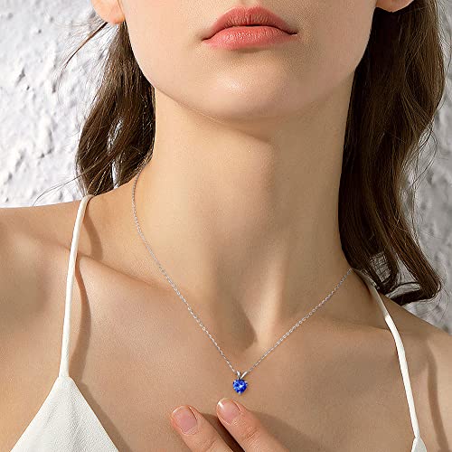• DESIGN: A stunning Heart-shape Created Sapphire(6*6mm) along a gleaming cable link chain, in this 925 Sterling Silver necklace; This light three prong wire basket is designed to showcase the rare beauty of a sparkle birthstone