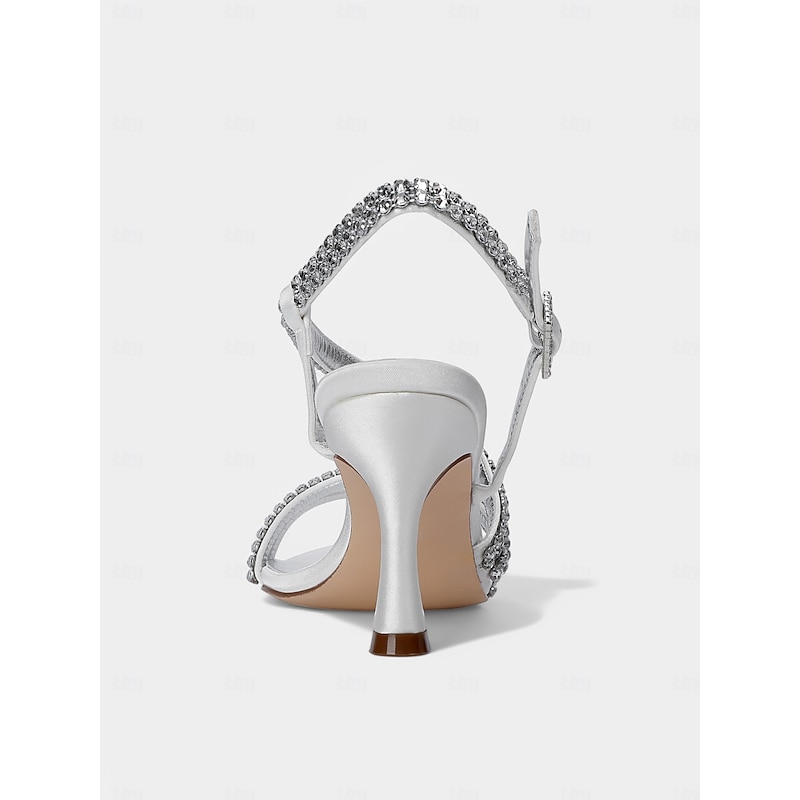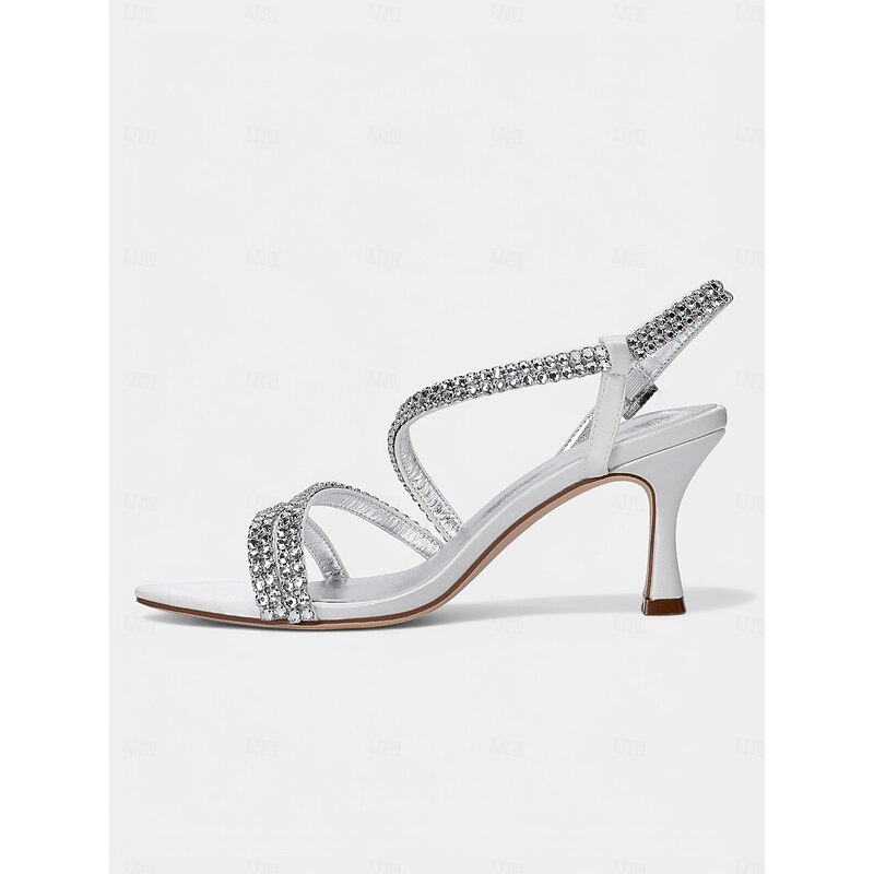 Women's Silver Strappy Slingback Sandals with Rhinestone Detailing – Sparkly Open Toe Kitten Heels for Cocktail Evenings and Wedding Receptions 31
