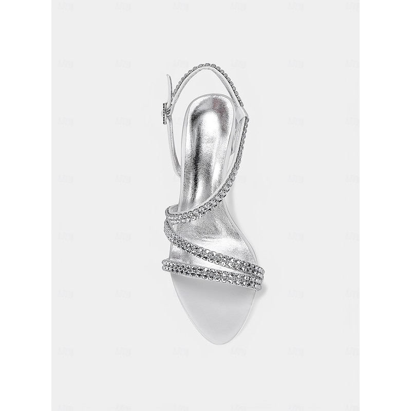 Women's Silver Strappy Slingback Sandals with Rhinestone Detailing – Sparkly Open Toe Kitten Heels for Cocktail Evenings and Wedding Receptions 30