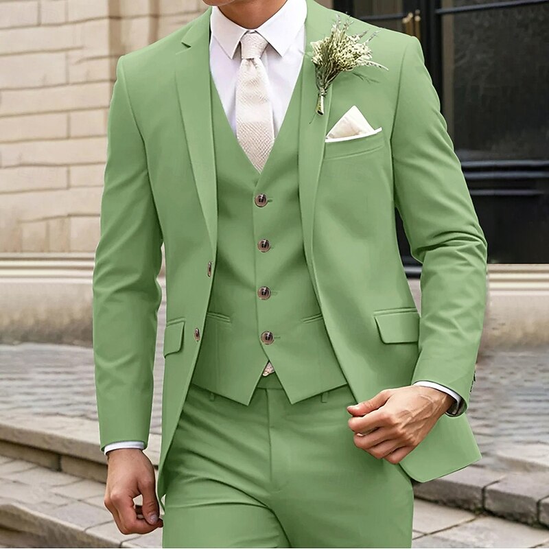 HOT ! Men's Wedding Business Suits Notch Lapel Black Light Grey Formal Solid Colored Standard Fit 3 Piece Single Breasted Two-buttons
