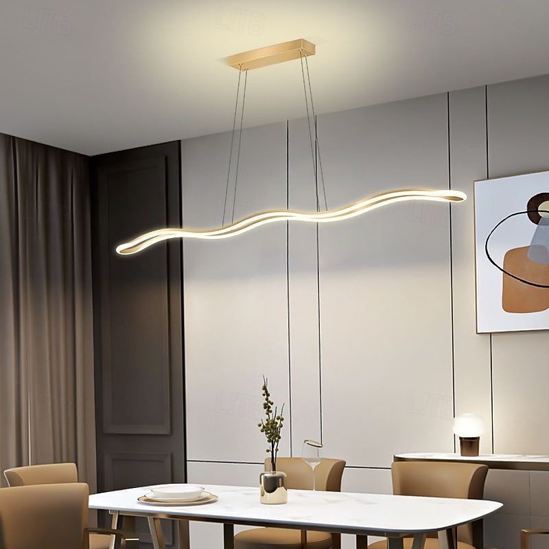 HOT ! Pendant Light Wave-Shape Dining Table Ceiling Hanging Lamps Modern LED Chandelier Ceiling Lights Fixture Simple Decor Suspended Lamp for Dining Room 100cm 220-240V