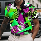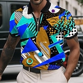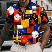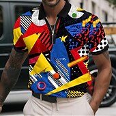 More information about Men's Abstract Geometic Zip Polo Shirts Short Sleeve Polo Shirts Collared Shirts Casual Athleisure Daily Wear 3D Print Summer Yellow Red Blue