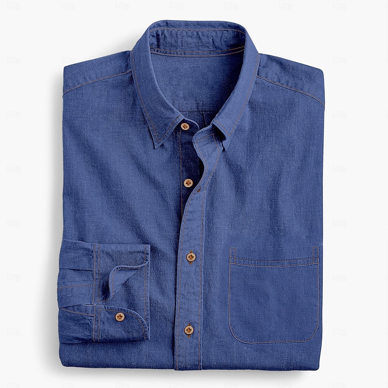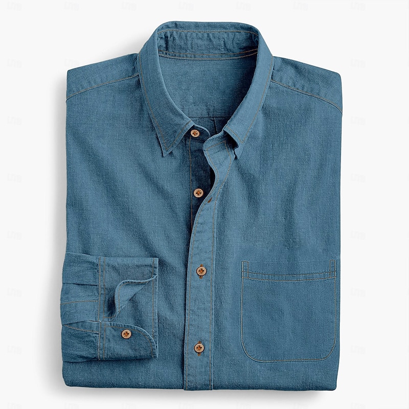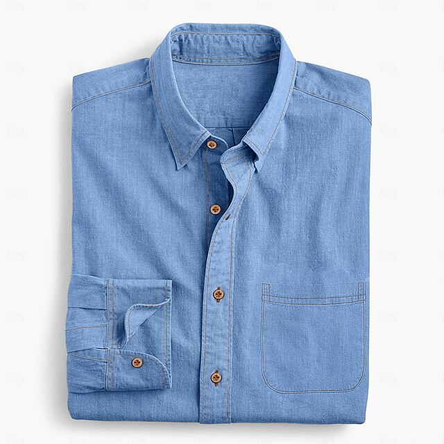 More information about Men's Shirt Chambray Shirt Calico Shirt Button Up Shirt Casual Shirt Denim Blue Black Deep Blue Dark Blue Long Sleeve Plain Collar Daily Vacation Clothing Apparel Fashion Casual