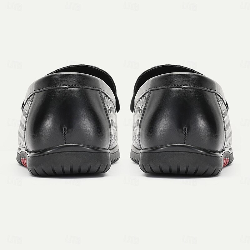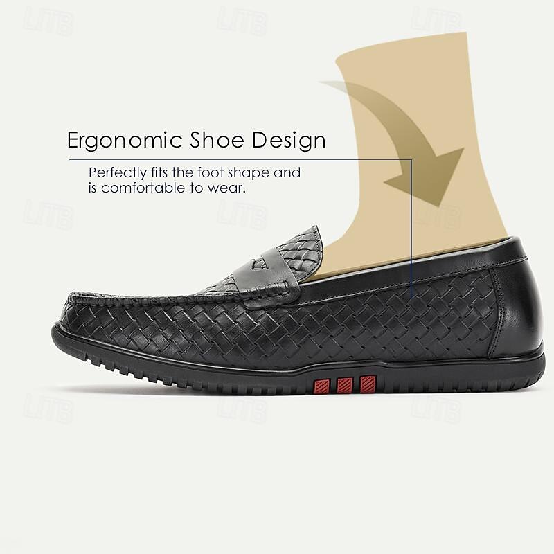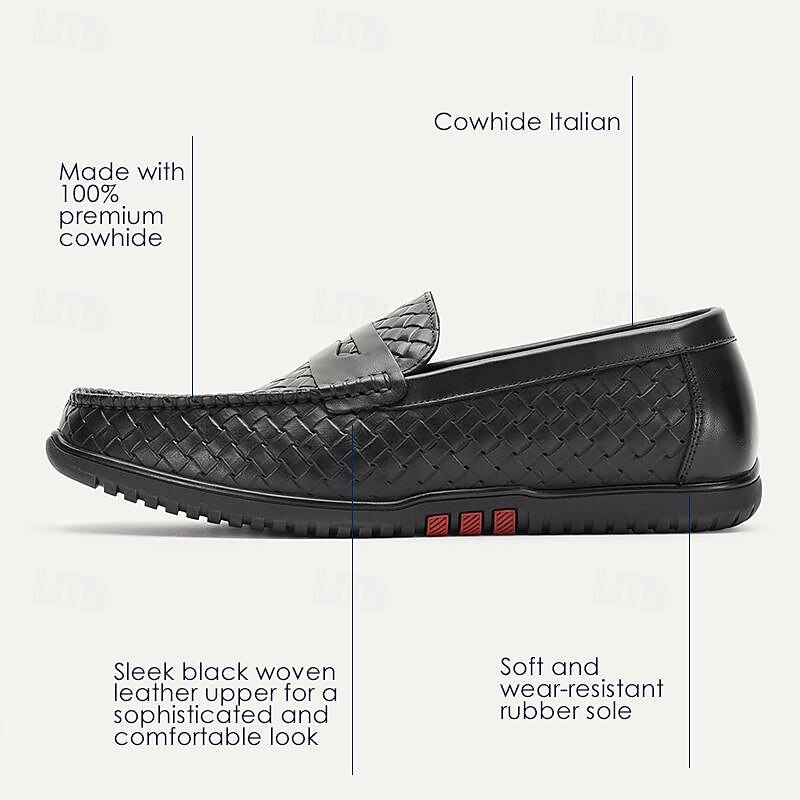 Highlights [Fabric] Crafted from 100% Italian full-grain cowhide leather, these men's loafers offer a premium feel with a sophisticated, woven design on the upper that ensures breathability and a timeless look. The use of high-quality materials promises durability and style. [Fit] Designed with a slip-on closure, these loafers offer both convenience and a secure fit, making them easy to wear and perfect for those on the go. The round toe shape provides ample space and comfort for all-day wear. [Design Highlights] Featuring a timeless yet contemporary woven pattern, the loafers are accented with a subtle tread pattern on the rubber outsole, enhancing both grip and durability. The leather lining adds an extra layer of comfort, ensuring a luxurious feel with every step. [Occasions] Ideal for various occasions, these loafers seamlessly transition from casual outings to semi-formal events. Whether you're driving, attending a weekend gathering, or stepping out for a casual dinner, these shoes offer versatility and charm. [Size Range] Available in a comprehensive size range from US6 / EU39 / UK5 to US13 / EU46 / UK12, these loafers cater to a wide variety of foot sizes, ensuring a perfect fit for every gentleman. Perfect for everyday use. superior materials and excellent craftsmanship ensure long-lasting durability.