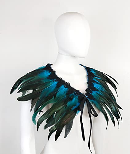 ZAKIA Women's Black Natural Feather Shawl Cape Gothic Feather Shrug Poncho Collar Halloween Cosplay Costume