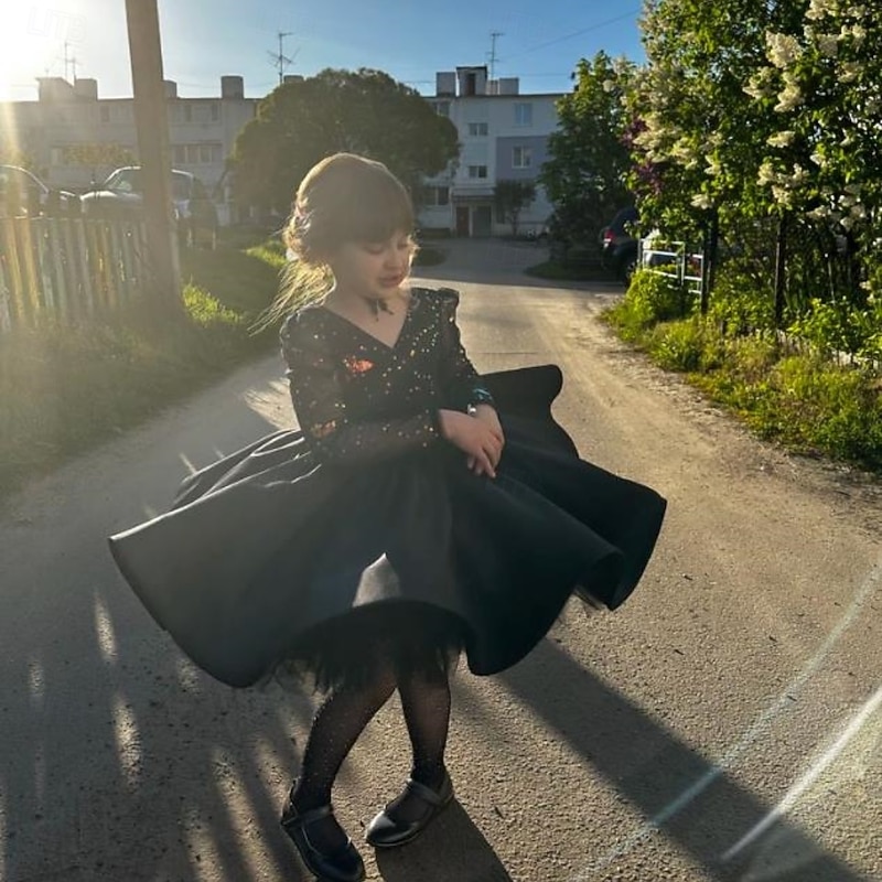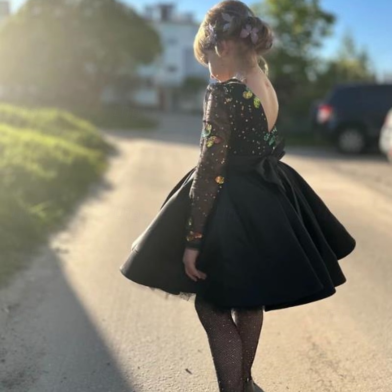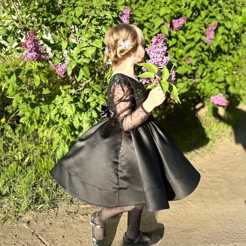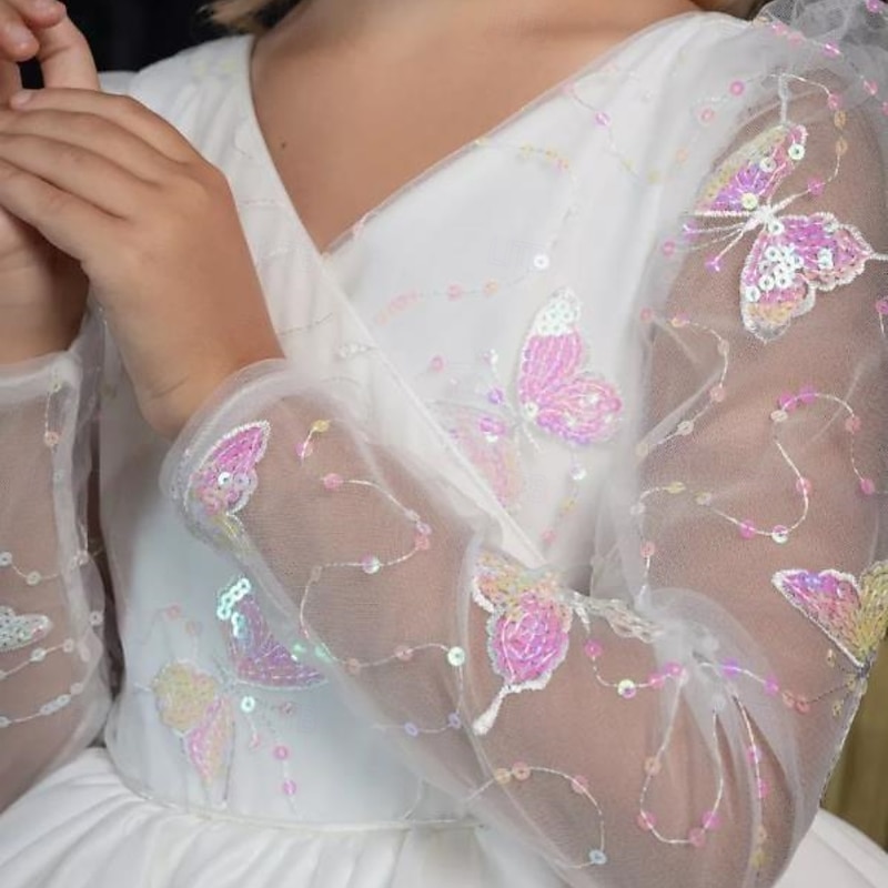 More information about Kids Girls' Flower Girl Dress First Communion Dress Party Dress Solid Color Long Sleeve Performance Wedding Party Mesh Princess Sweet Mesh Mid-Calf Sheath Dress Tulle Dress Summer Spring Fall kids