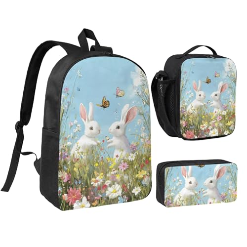 HOT ! Bunny Backpacks 3 Pcs Lightweight Casual Backpack with Fun Graphic Cartoon Print for Travel Work