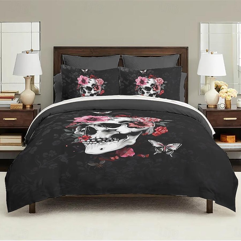 $41.99 - Halloween Floral Skull Duvet Cover Set - Includes Duvet Cover and Pillowcases - Spooky and Festive Design - Soft and Comfortable Fabric - Perfect for Halloween Home Decor 2025. Shop for cheap Halloween Bedroom online? Buy at lightinthebox.com on sale today!