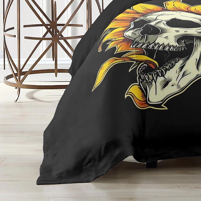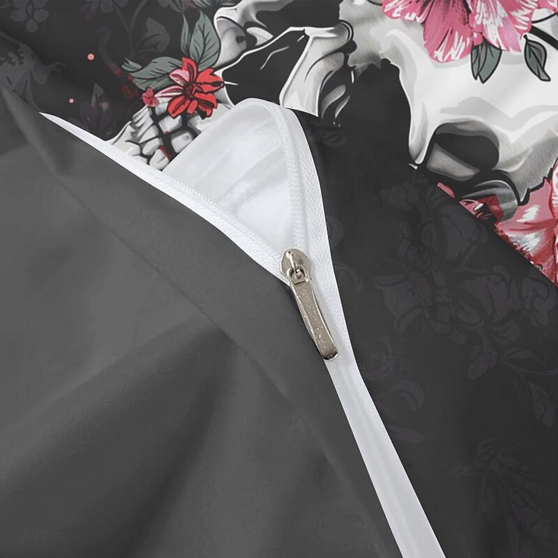 Halloween Floral Skull Duvet Cover Set - Includes Duvet Cover and Pillowcases - Spooky and Festive Design - Soft and Comfortable Fabric - Perfect for Halloween Home Decor 7