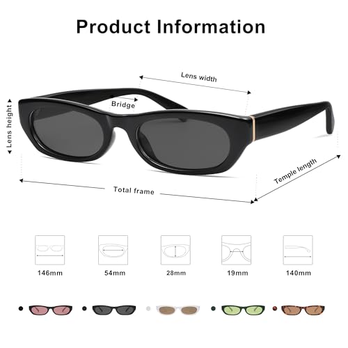 • PRODUCT MATERIALS: These chic narrow rectangular sunglasses features a solid polycarbonate frame, HD TAC polarized lenses, and sturdy metal hinges, providing a more resistant experience and longtime usage.