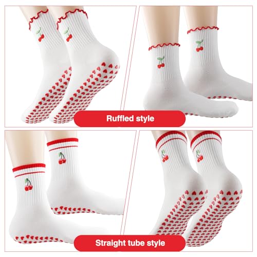 • Cherry & Stripe Design: Adorned with vibrant cherry patterns symbolizing sweetness and energy, these socks feature red stripes that visually elongate legs.The fashionable design keeps you trendy even during workouts