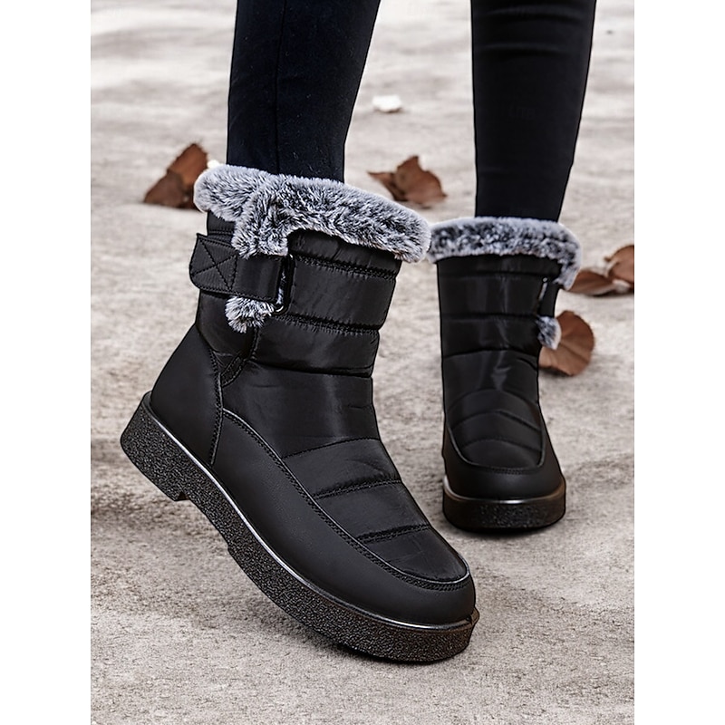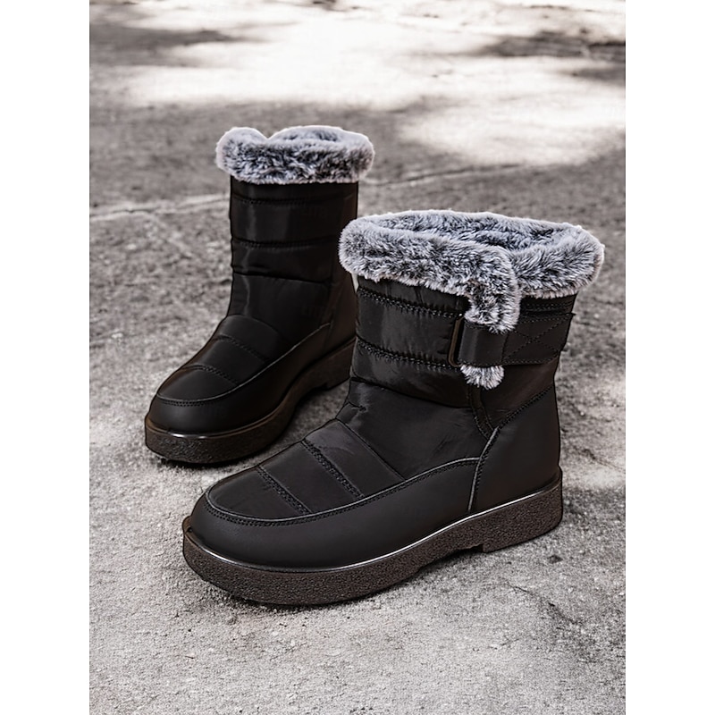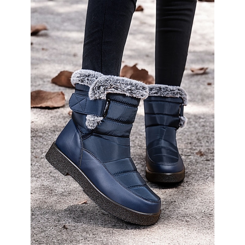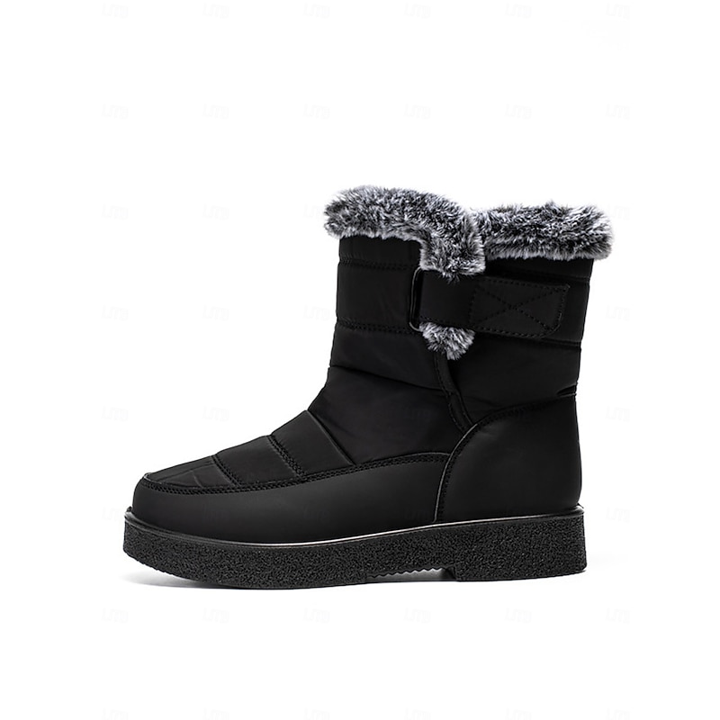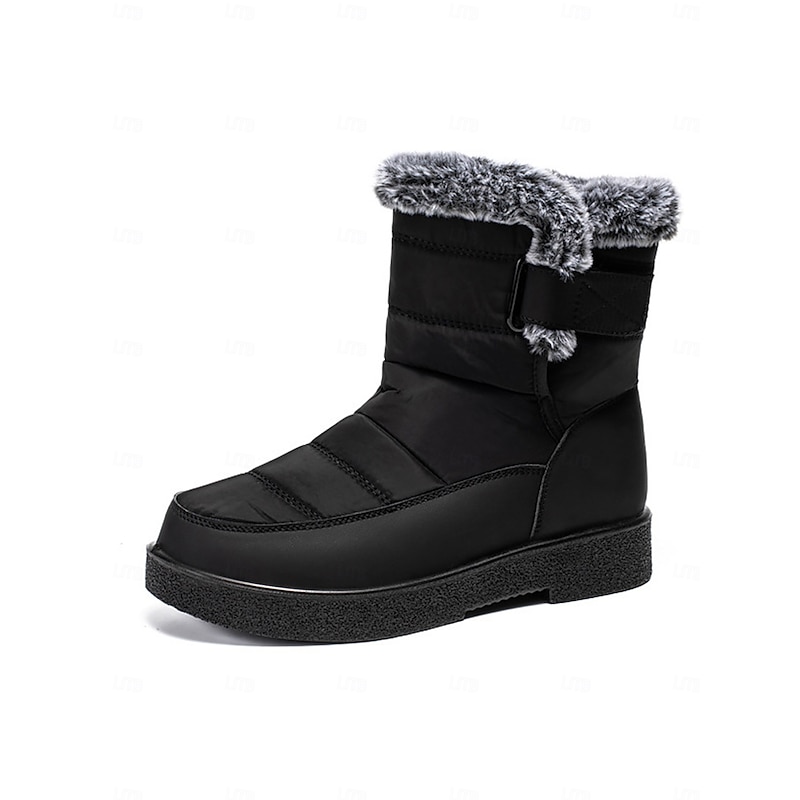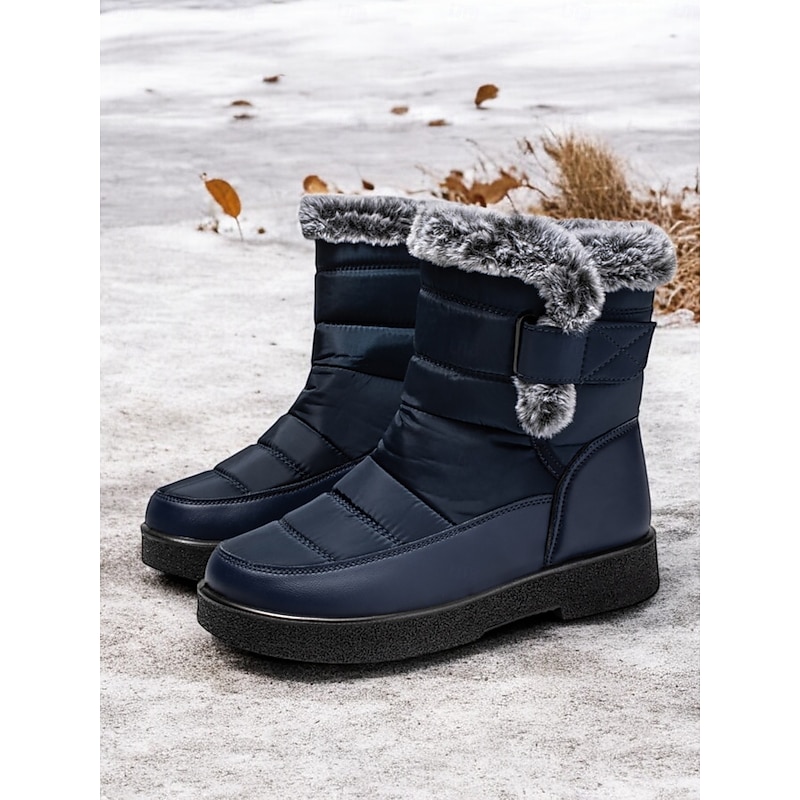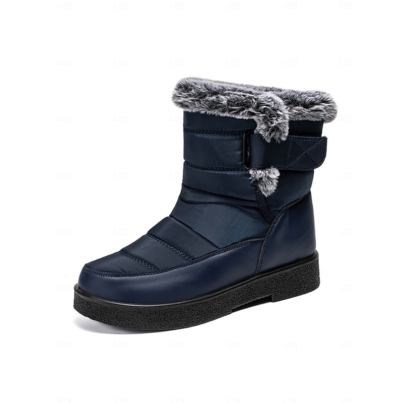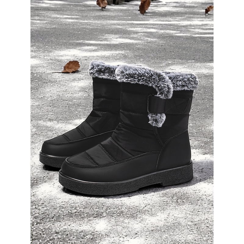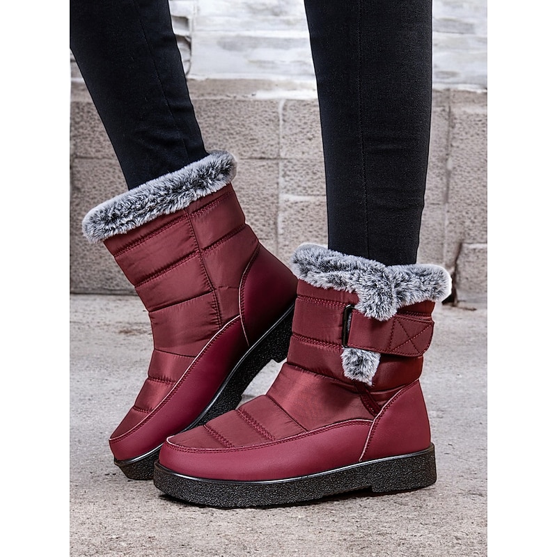 Highlights [Fabric and Construction] : Designed for winter warmth and durability, these women's snow boots feature a water-resistant cloth upper that provides reliable protection against snow and moisture. The interior is lined with plush fleece, ensuring your feet remain warm and cozy throughout the cold season. [Fit and Style] : With a sleek, mid-calf design, these boots offer excellent coverage and a modern, casual look. The flat heel type ensures comfort for all-day wear, and the convenient pull-on closure with adjustable magic tape straps allows for a snug and personalized fit. [Design Highlights] : The boots are adorned with a quilted pattern in a rich burgundy hue, complemented by an elegant faux fur trim along the top edge. This combination not only adds a touch of sophistication but also enhances their overall allure. The robust rubber outsole is slip-resistant, providing excellent traction on icy or wet surfaces. [Occasions] : Perfect for daily use during fall and winter, these boots are a stylish choice for outdoor adventures or casual outings in cold weather. Whether you're navigating through snowy streets or enjoying a winter walk, they combine practicality with trendy details. [Size Range] : Available in a variety of sizes, these boots cater to different foot shapes and preferences, ensuring the right fit for maximum comfort and warmth. Sizes include US5.5 to US10.5, accommodating a wide range of foot sizes for women seeking both style and functionality in their winter footwear.