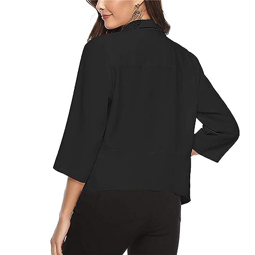 More information about HGps8w Women's Flowy Chiffon Blazers 3/4 Sleeve Open Front Cardigans Lightweight Work Office Tops