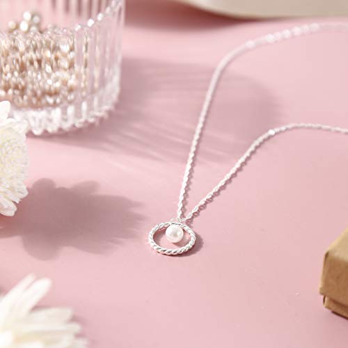 • Unique Design: Sterling Silver Spiral Striped Ring with Small Dainty Pearl Necklace, Both Necklace and Chain are Sterling Silver