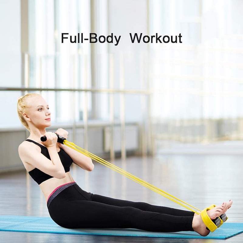 Highlights Product Selling Points: - High-quality yoga equipment for resistance workouts targeting multiple body areas - Resistance bands for women with handles and pedals that also function as abs workout equipment - Improves stretching and flexibility - Aids in fat loss and muscle building - Helps prevent cervical spine and lumbar pain - Suitable for use at home, gym, hotel room, office or outdoors - Made of durable and reliable latex material - Achieve complete health and fitness with this portable exercise equipment.