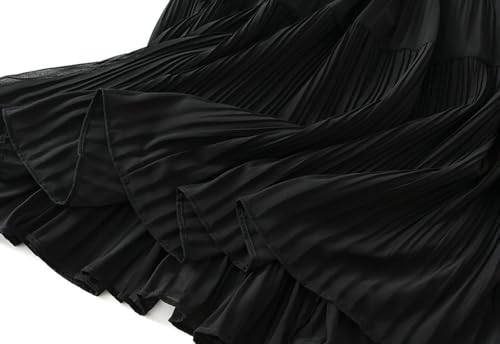 Womens Pleated A-Line Skirt Elastic High Waist Midi Long Skirts Flowy Casual Chiffon Skirt for Wedding Party Club 5