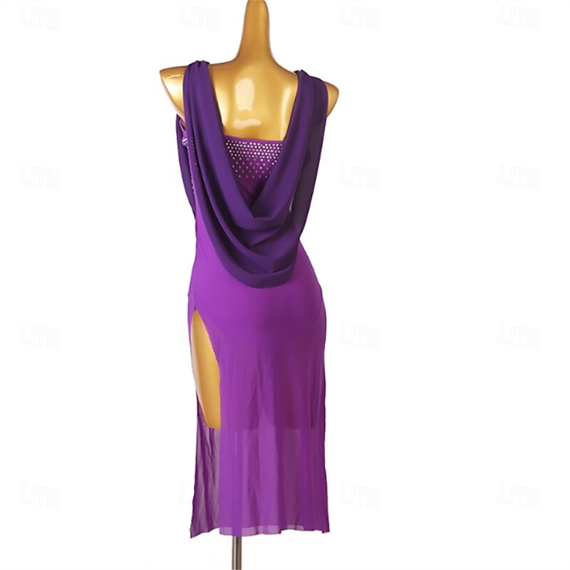 Women's One Shoulder Latin Dance Dress Rumba Dance Practice Dresses Performance Dresses 9