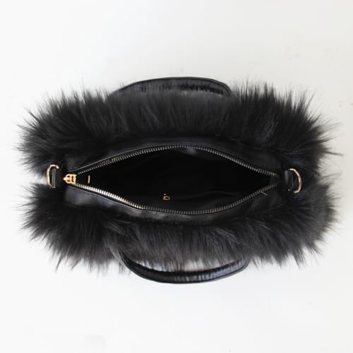 QMFUR Women's Shoulder Handbags Furry Fluffy Fuzzy Faux Fur Tote Bag Satchel Handles Handbag 6