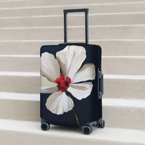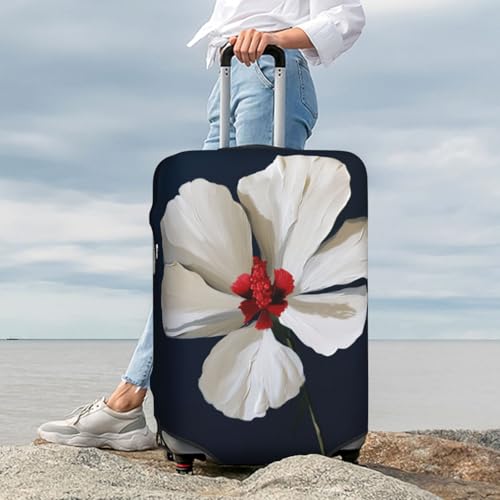 HOT ! White Flower With A Red Center Vintage Elastic Travel Luggage Covers Dustproof Scratch-Resistant Suitcase Protector Fit 22-24 Inch