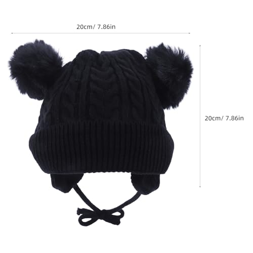 Lurrose Baby Pom Pom Beanie: Toddler Winter Ear Protection Cap - Chunky Knit Winter Hat with Fold-Up Brim for Snow Play & Outdoor Sports 6