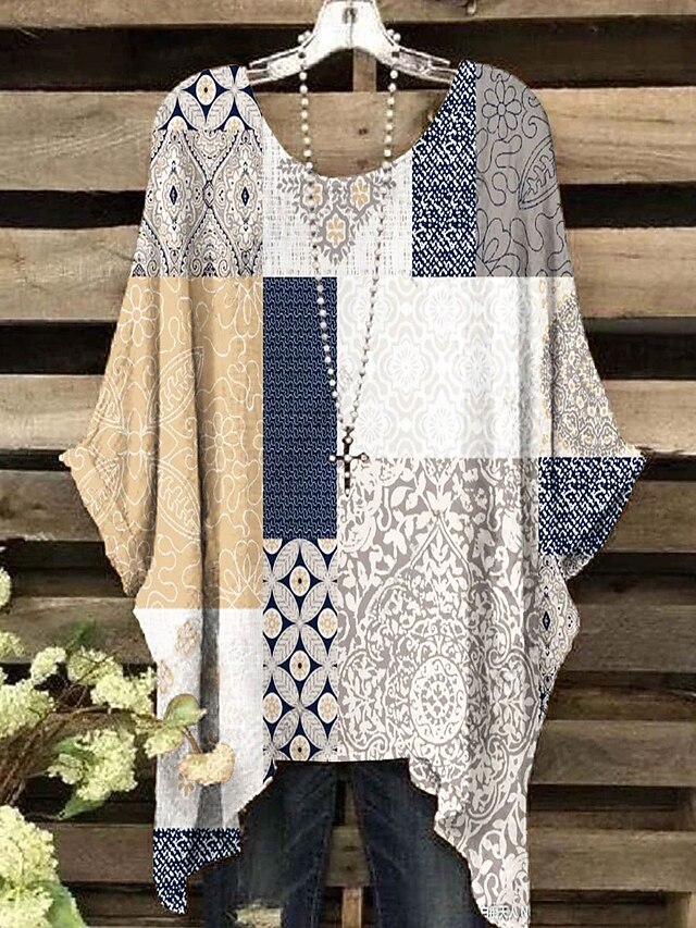 Highlights - Loose Fit for a comfortable and relaxed feel - Trendy Print design for a stylish look - Classic Crew Neck for a versatile and timeless appeal - Chic Batwing Sleeves add a fashionable touch to the overall look