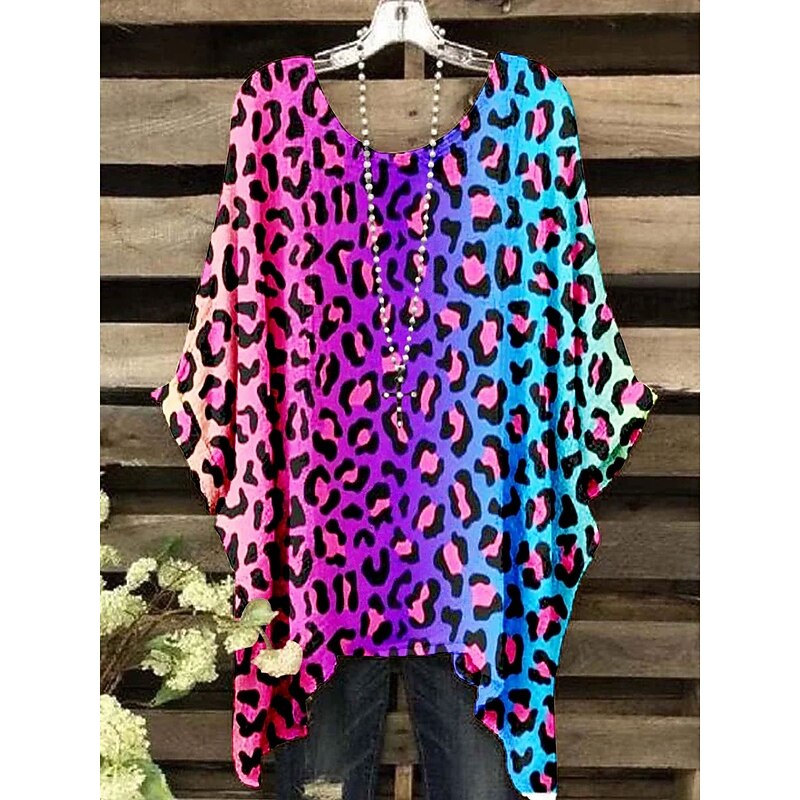More information about Women's Boho Shirt Floral Graphic Geometric Elegant Bohemia Active Short Sleeve Batwing Sleeve Crew Neck Regular Tops Daily Holiday Beach Wear Print White Yellow Red Blue Purple Summer Spring