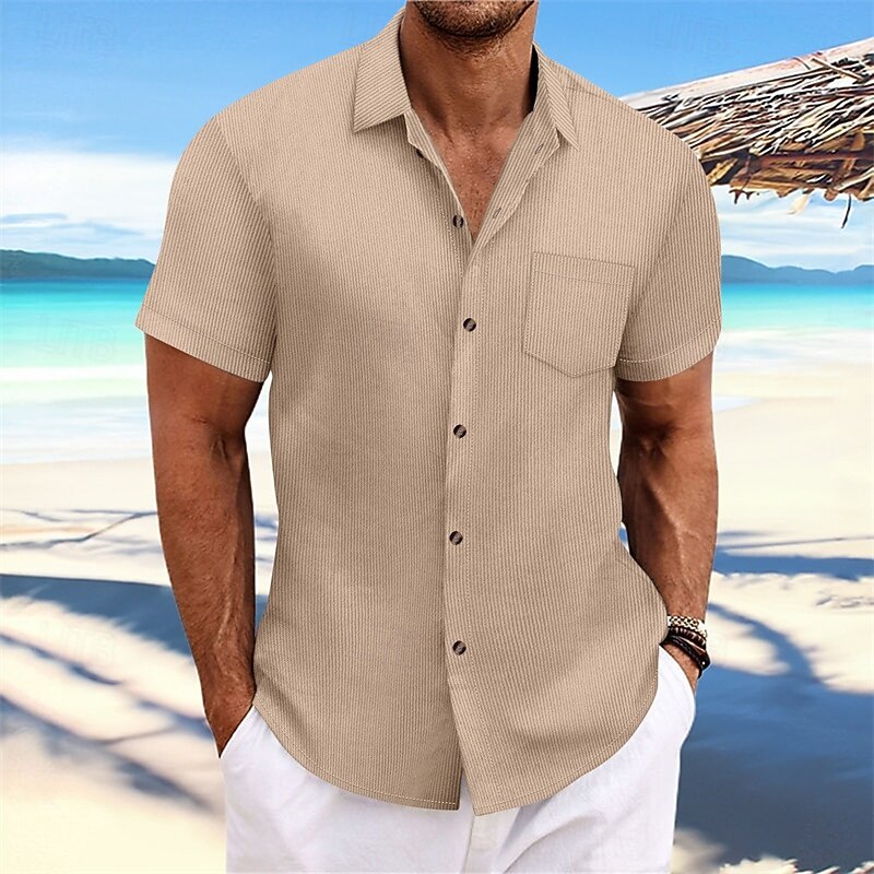 HOT ! Men's Shirt Summer Shirt Casual Shirt Beach Shirt Button Up Shirt Black Navy Blue Blue Dark Green Brown Short Sleeve Plain Lapel Vacation Hawaiian Jacquard Clothing Apparel Polyester Fashion Casual