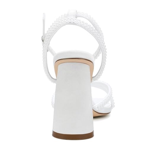 More information about Pearl Heels Strappy Bridal Shoes Block Heel Wedding Sandals Open Toe Wedding Shoes for Bride