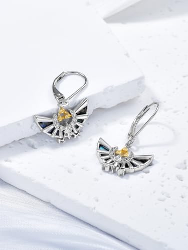WINNICACA Game Earrings 925 Sterling Silver Anime Triforce Legend Drop Dangle Earrings Abalone Shell Jewelry Gifts for Men Women Birthday Graduation Presents Gifts 5