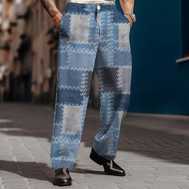 Why Choose Men's Plaid Dress Pants Mid Waist Vintage Business Casual Formal Dailywear Pocket Straight Leg Trousers Summer Spring Fall 3D Print Blue?