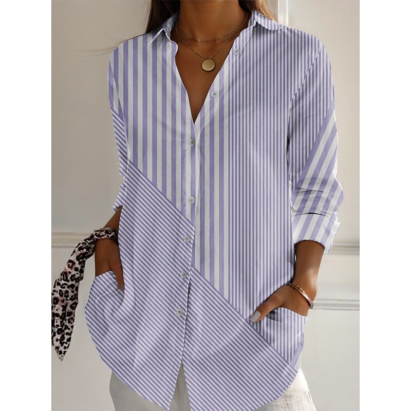 More information about Women's Shirt Striped Active Daily Stylish Long Sleeve Shirt Collar Regular Tops Daily Holiday Buttons Print Blue Purple Green Khaki Gray Spring Fall