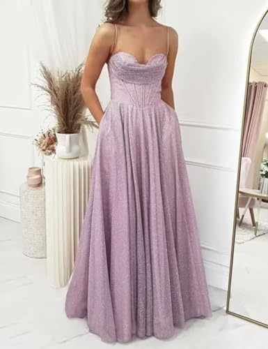 • [Sparkly Prom Dress with Slit] This formal dress is made of sparkly glitter fabric,Built-in bra,skin-friendly, light weight,spaghetti straps,sweetheart neck,a line,floor length,lace up back,high slit,backless,with pockets.