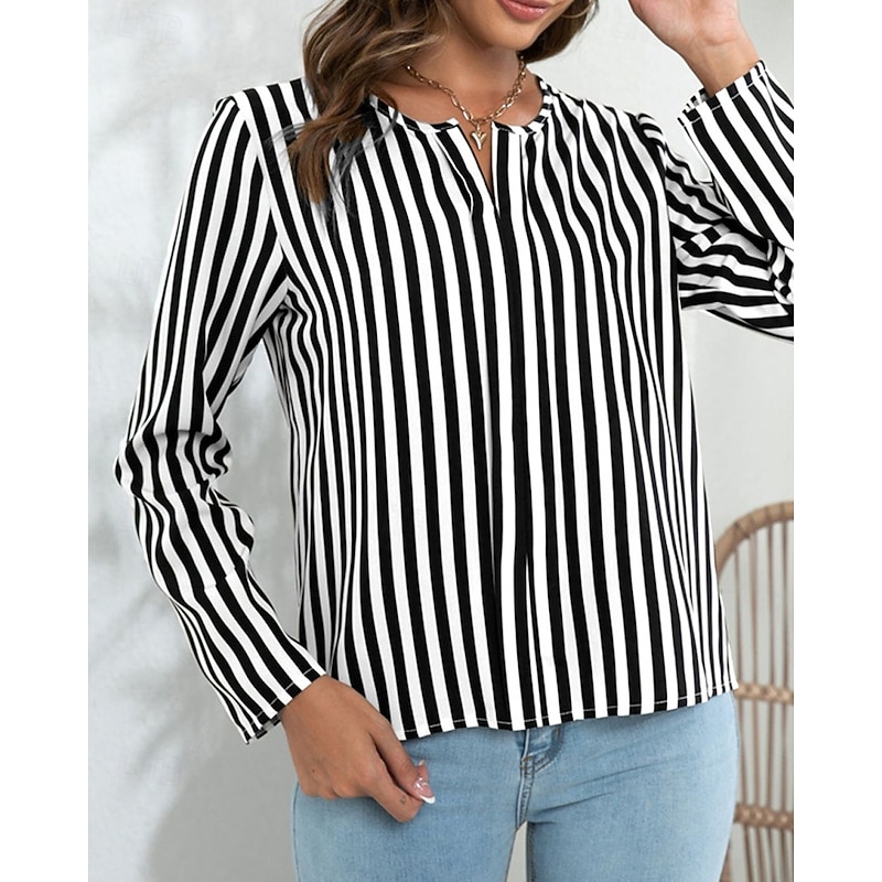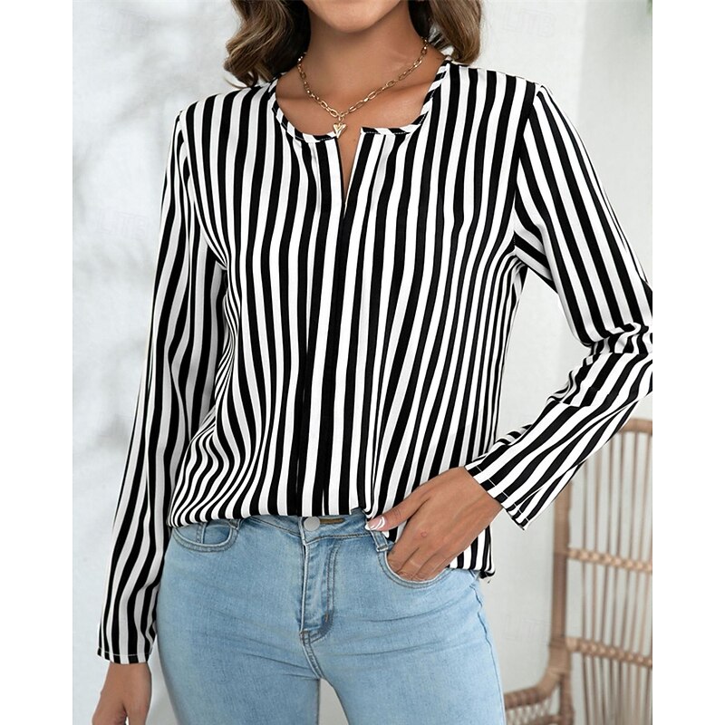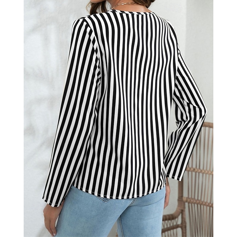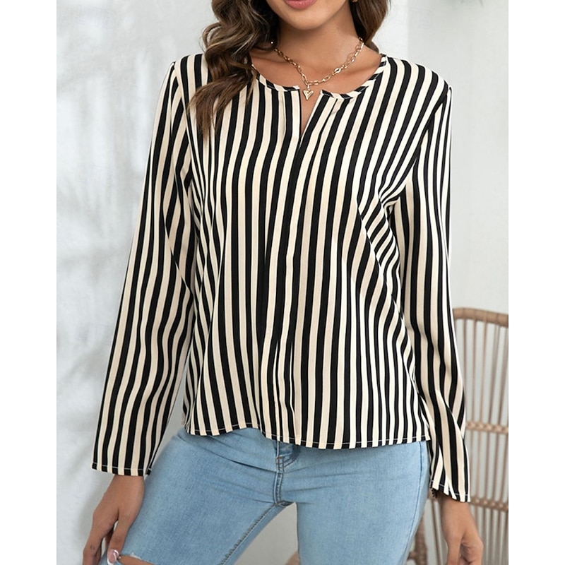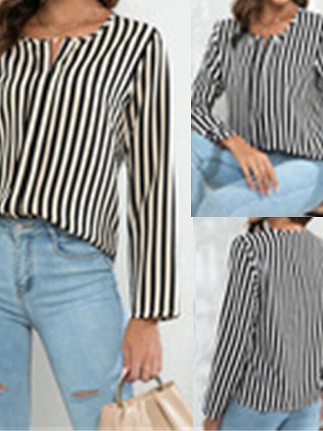 More information about Women's Summer Tops Chiffon Tops Striped Daily Stylish Basic Long Sleeve V Neck Regular Tops Work Daily Holiday Print White Apricot Spring Fall