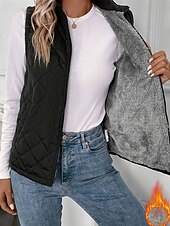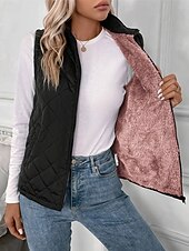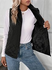 More information about Women's Puffer Jacket Quilted Jacket Casual Jacket Comfortable Breathable Zipper Pocket Casual Plain Vacation Street Casual Daily Wear Zipper Regular Turndown Regular Fit Sleeveless Outerwear Black