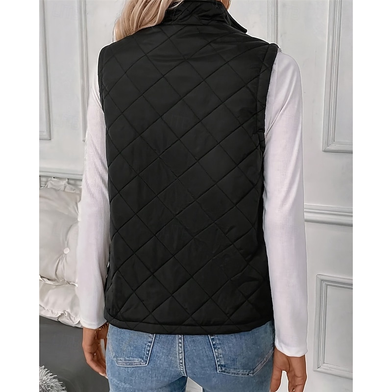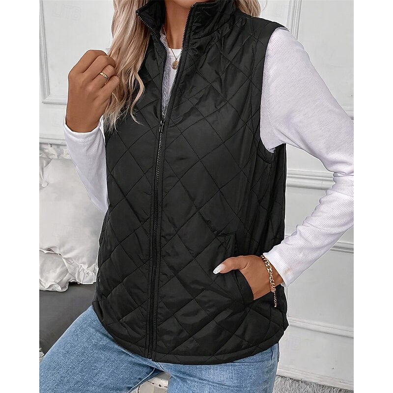 HOT ! Women's Puffer Jacket Quilted Jacket Casual Jacket Comfortable Breathable Zipper Pocket Casual Plain Vacation Street Casual Daily Wear Zipper Regular Turndown Regular Fit Sleeveless Outerwear Black